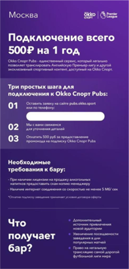 to create the mechanics of connecting bars across Russia to legal broadcasts of the English Premier League