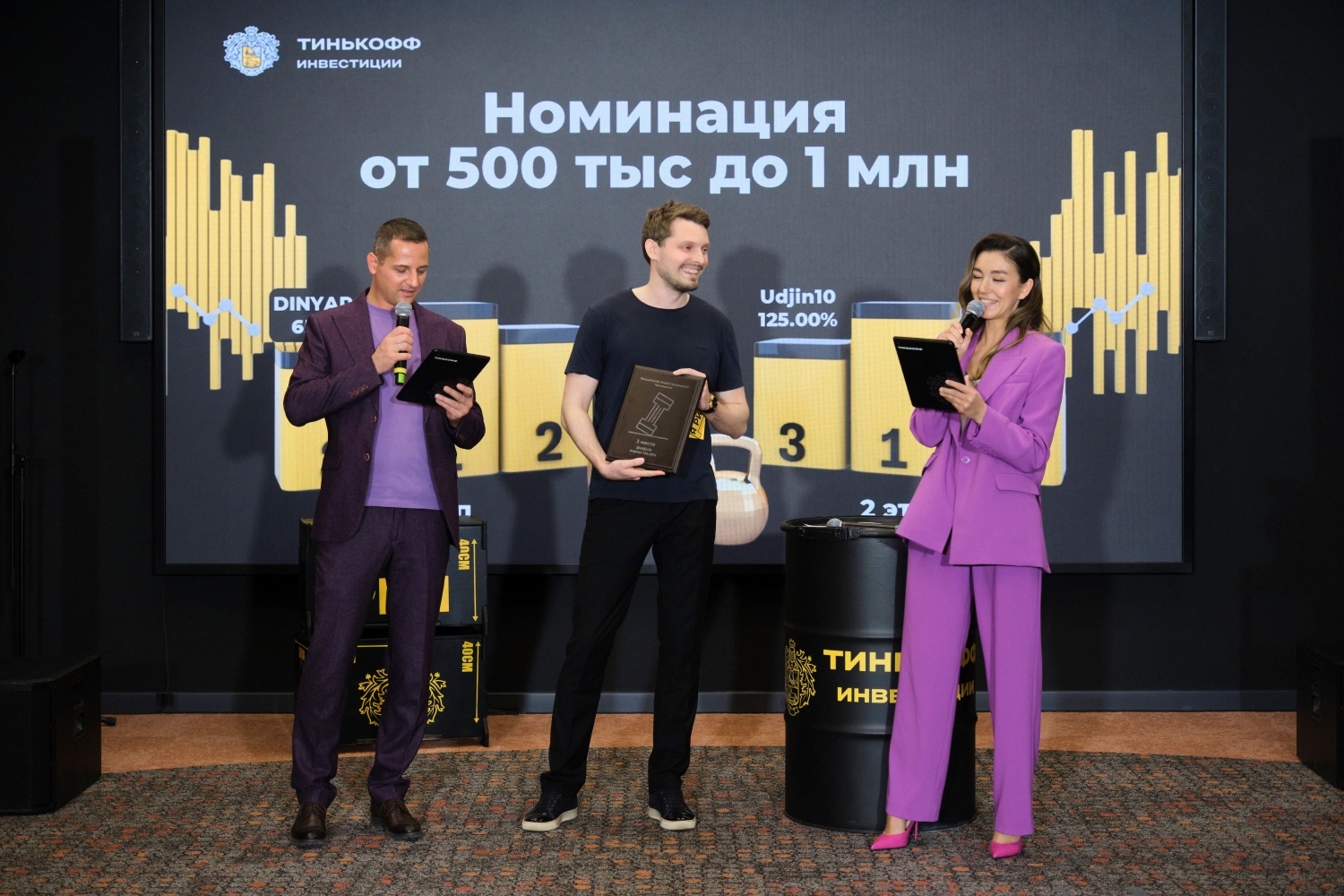 Именно в таком формате и создавалась церемония награждения РИЧ. Спортивная атрибутика, турнирные таблицы, пьедестал для награждения, символ чемпионата - финансовая гантель